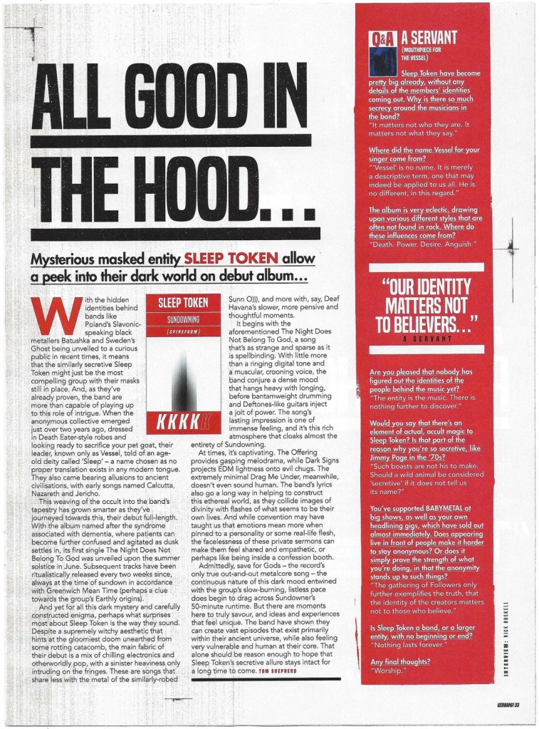- Metal Hammer – 25 juillet 2017 : Suivi approfondissant l’esthétique de Sleep Token.