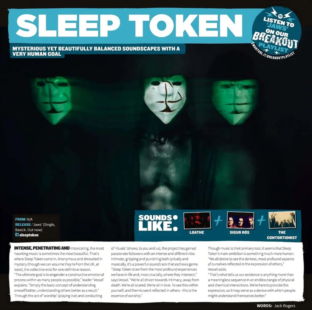 - Rolling Stone – juillet 2025 : The psychology of how Sleep Token became the masked mammoths of metal