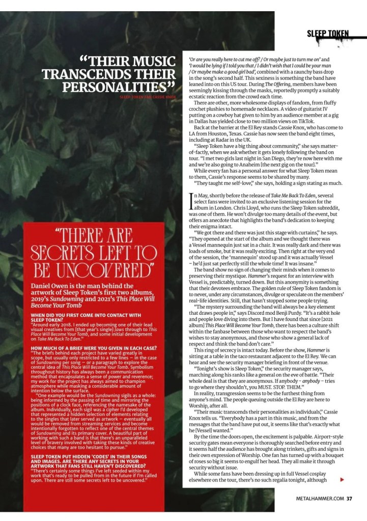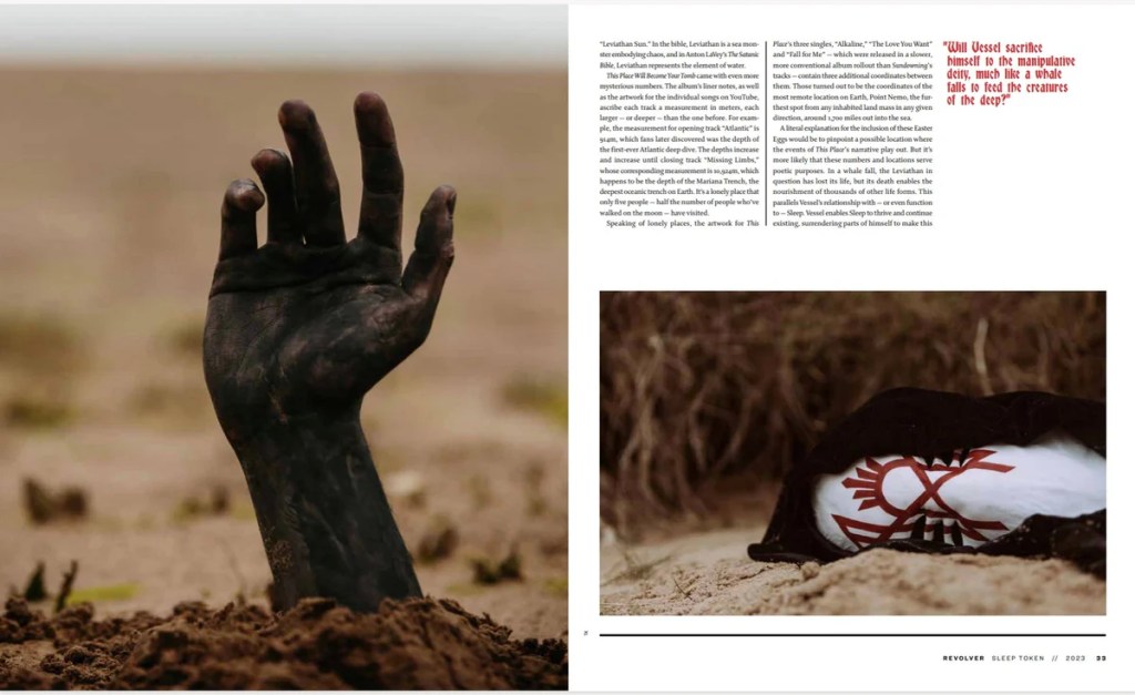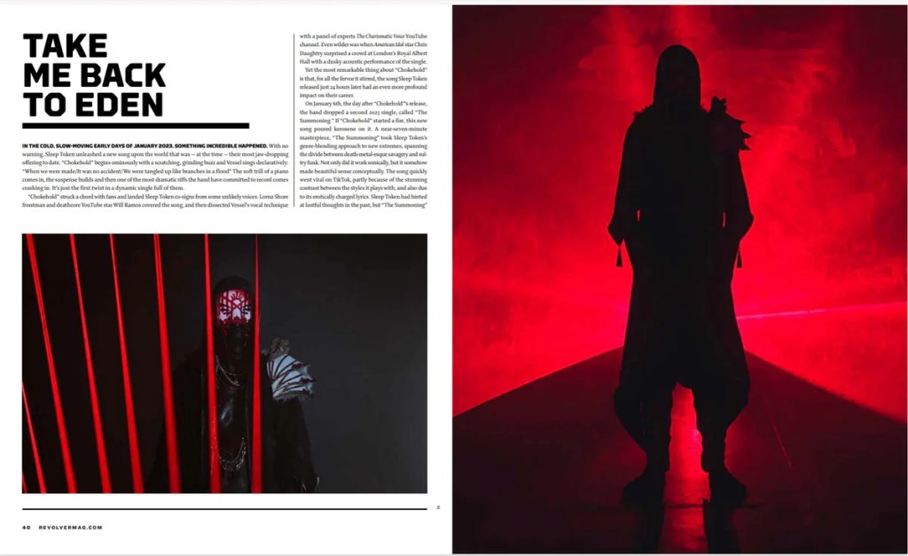 Revolver a consacré un numéro spécial de 76 pages à Sleep Token, les désignant comme « Artiste de l’année 2023 ». Ce numéro, entièrement approuvé par le groupe, propose :