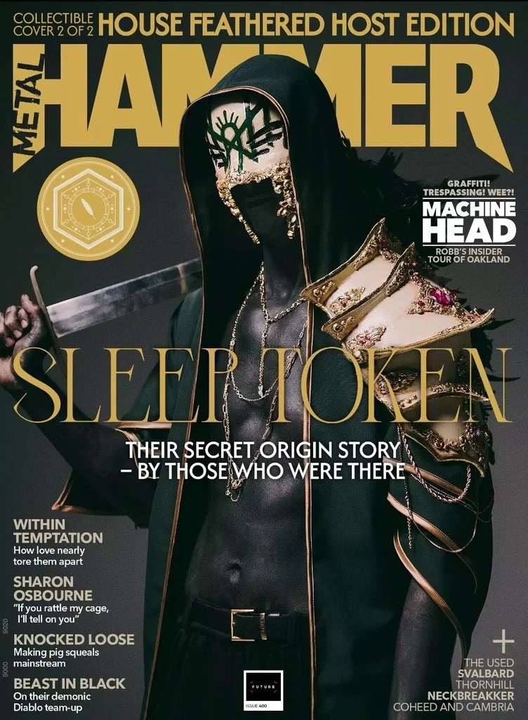 Sleep Token figure sur l’une des couvertures de l’édition été 2023 de Revolver, aux côtés d’Avenged Sevenfold, Queens of the Stone Age et BABYMETAL. Ce numéro met en avant des artistes audacieux et innovants, avec un article explorant le phénomène Sleep Token et leur ascension dans la scène alt-metal.